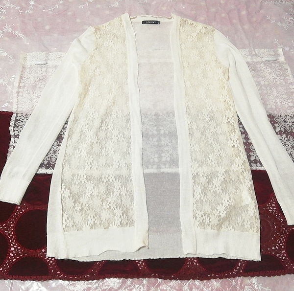 - 白レース花柄カーディガン羽織ガウン White lace floral cardigan haori gown