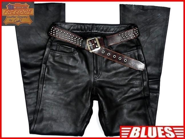 > 即決★FREEDOM★W29 レザーパンツ フリーダム メンズ 黒 ブラック 本革 ライダースパンツ 本皮 ブーツカット パンクロック ツーリング