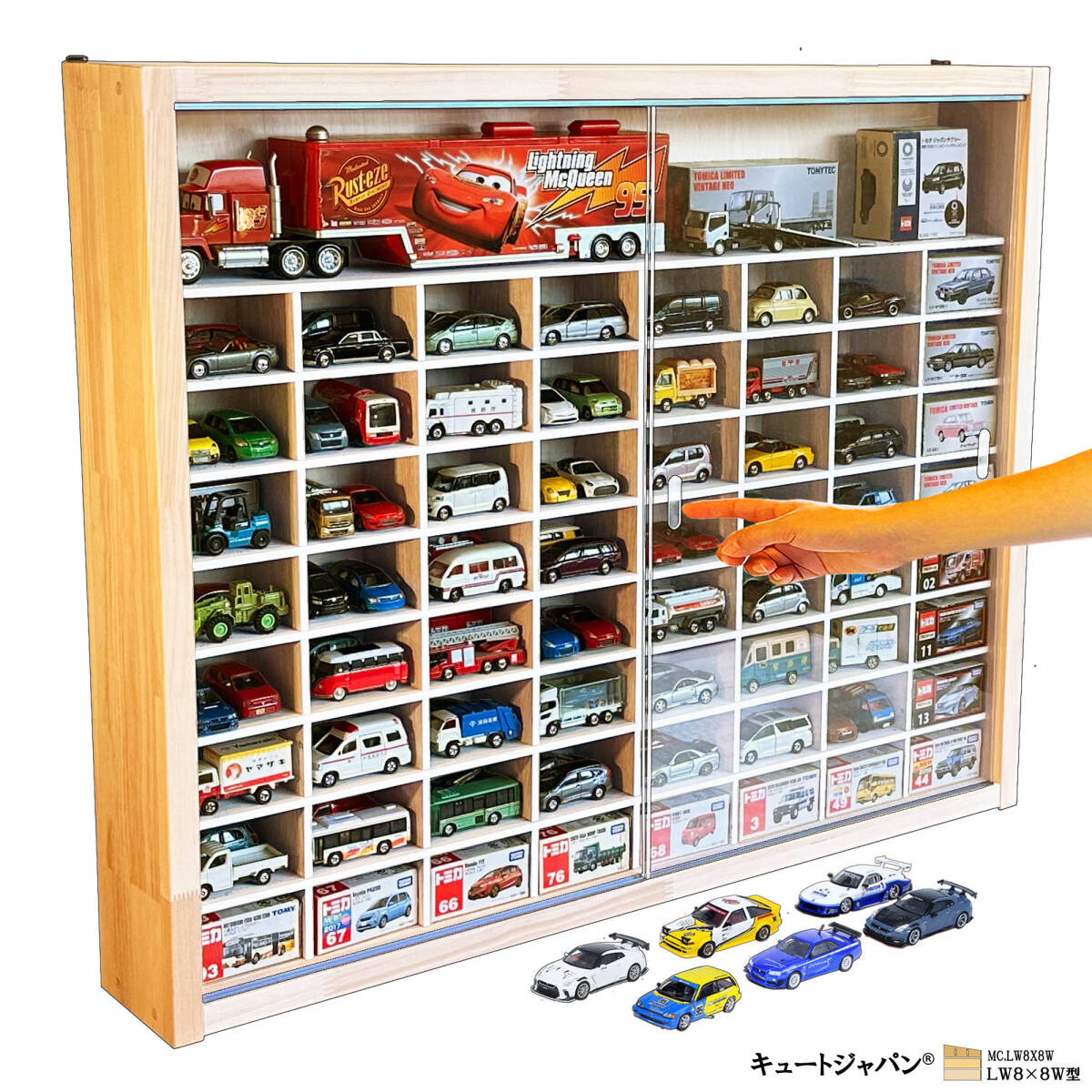 - 送料無料★【木製ミニカーケース】トミカ128台・大型サイズ収納 アクリル障子付 コレクション 日本製 LW8×8W型