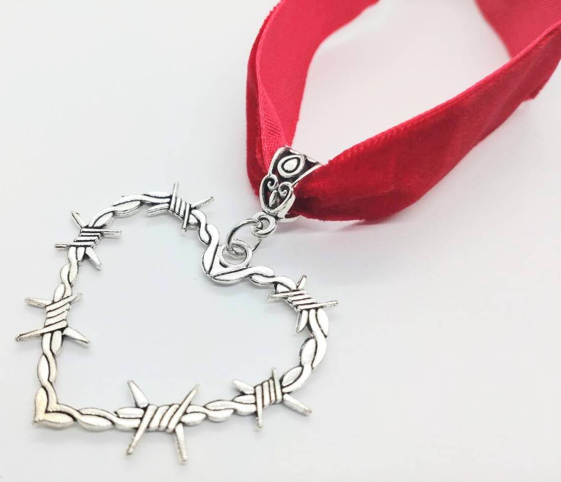 - 送料無料 トゲ ハート スパイク レッド チョーカー ネックレス ロック パンク ストリート ゴスロリ ゴシック スマアク