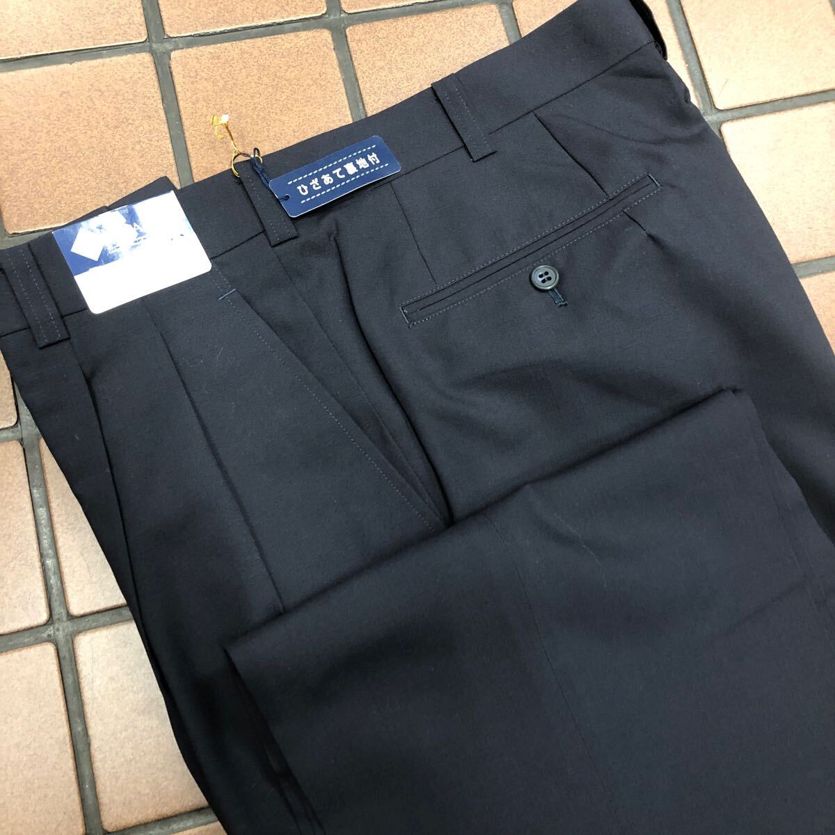 - 新品☆未使用 W94cm ネイビー系 スラックス カジュアルパンツ ゴルフウェア GOLFパンツ 2タック さらさら生地 ウール100% ゆったりタイプ