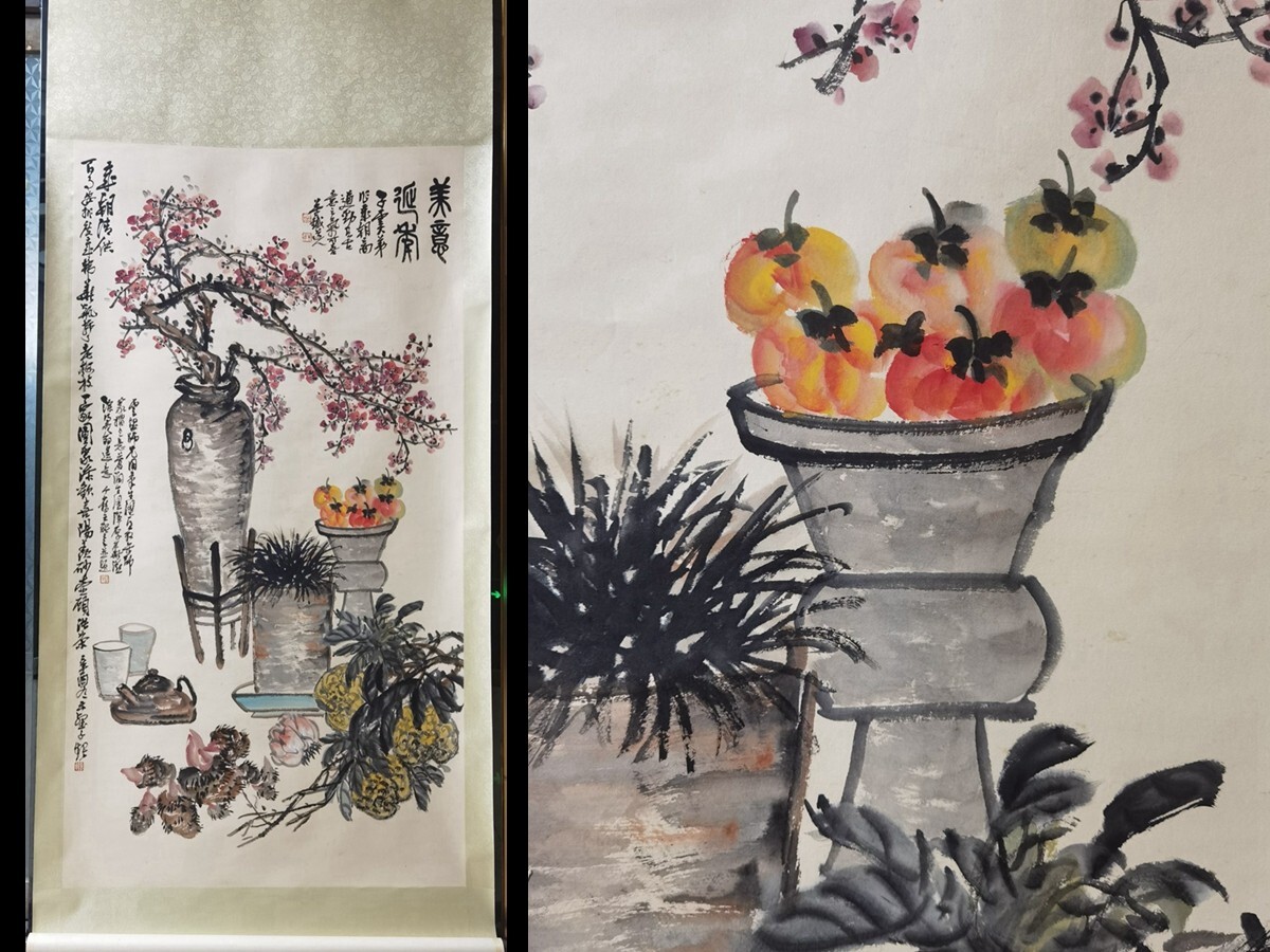 - 中国書画「趙雲壑 清供図」肉筆紙本 掛け軸 墨寶妙品 書画立軸 巻き物 古美術 蔵出