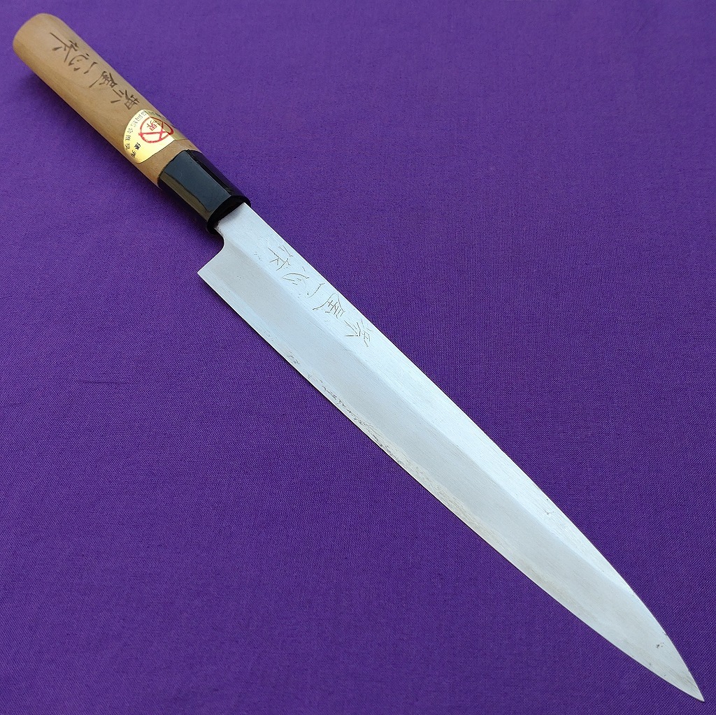 - 柳刃包丁 刺身包丁 正夫 和包丁 堺屋一心作 刃長約203㎜ 峰厚最大約4㎜ 片刃 やなぎ 庖丁 Japanese sashimi knife fish slicer 【5909】