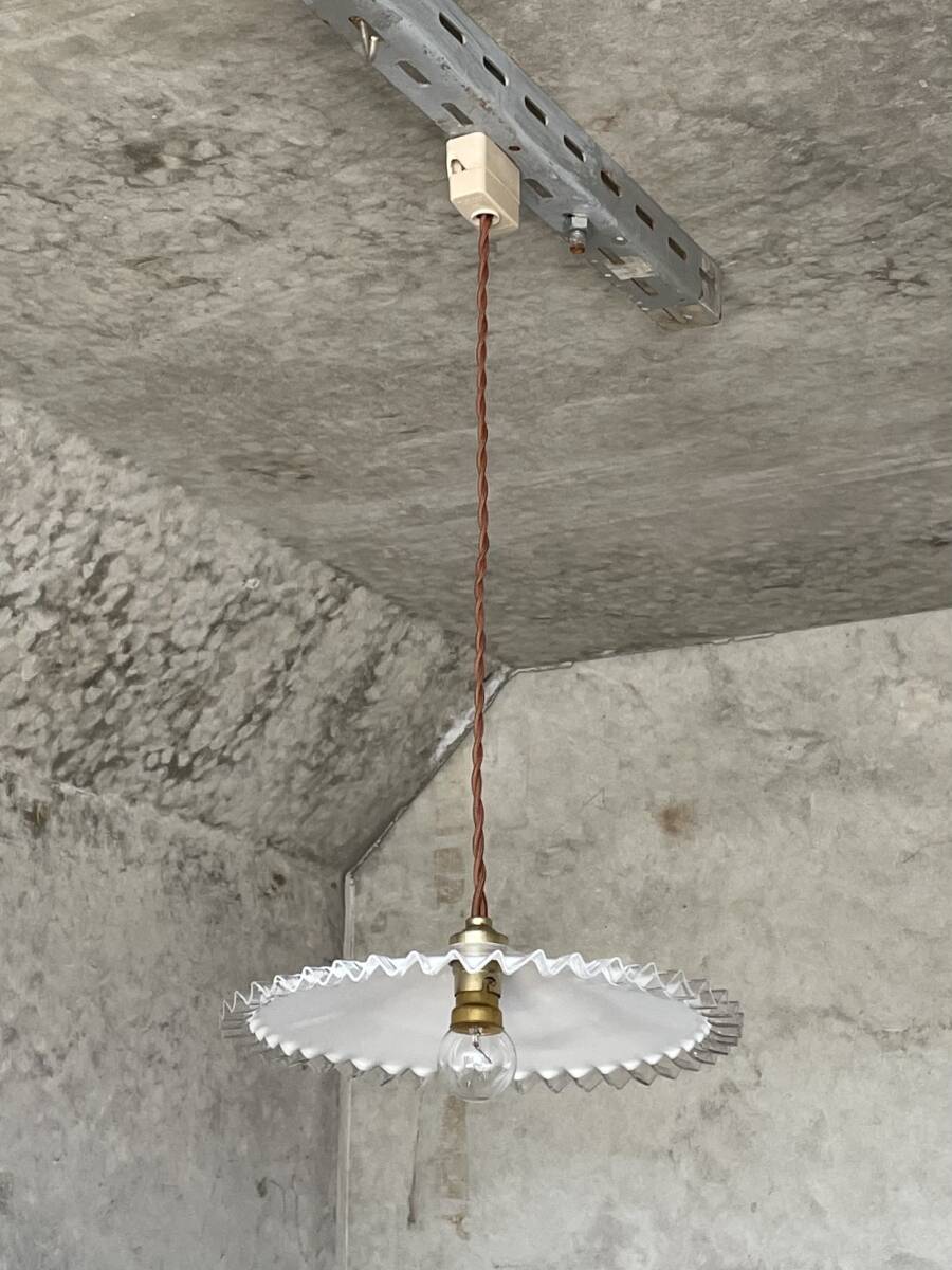 - 【merci】br2-2. フランス 吊り下げ ミルクガラス シェード ランプ 古道具 店舗什器 カフェ アンティーク 古民家 蚤の市