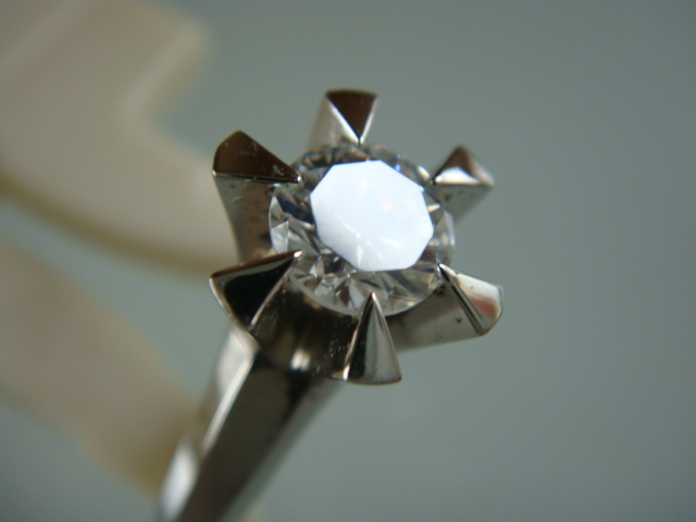 - ◆ シルバーリング 銀製 立て爪 ダイヤモンド風の石 9号サイズ ファッションリング 目立つ傷なく綺麗 レターパック発送