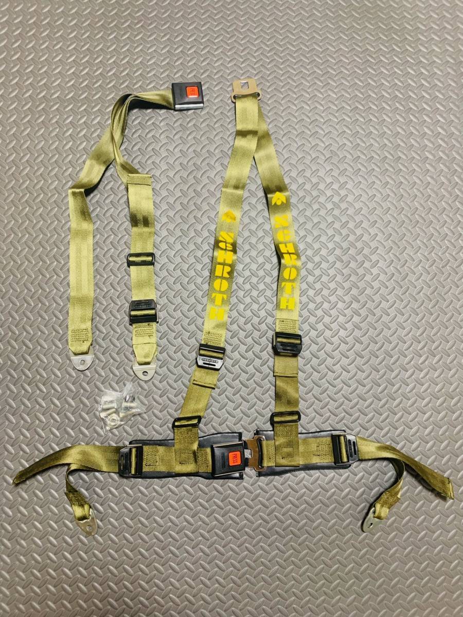 > 未使用 シュロス スチールバックル 4P 4点シートベルト カーキ グリーン リヤバックル有 4点式 レーシングハーネス SCHROTH 当時物 希少色