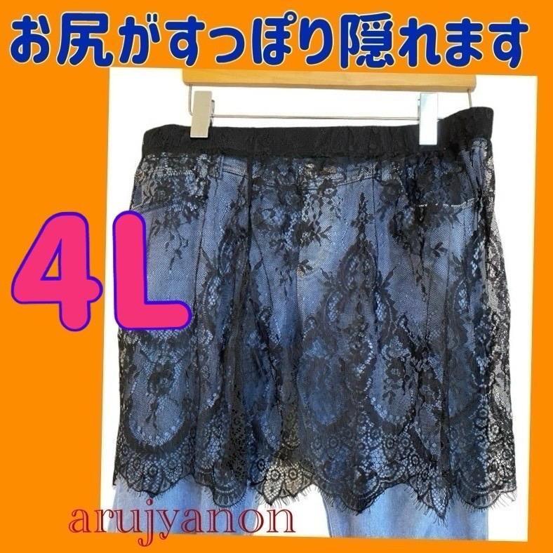 - 大きいサイズ スカート 黒 4L レース レディース 重ね着 ヒップ隠し