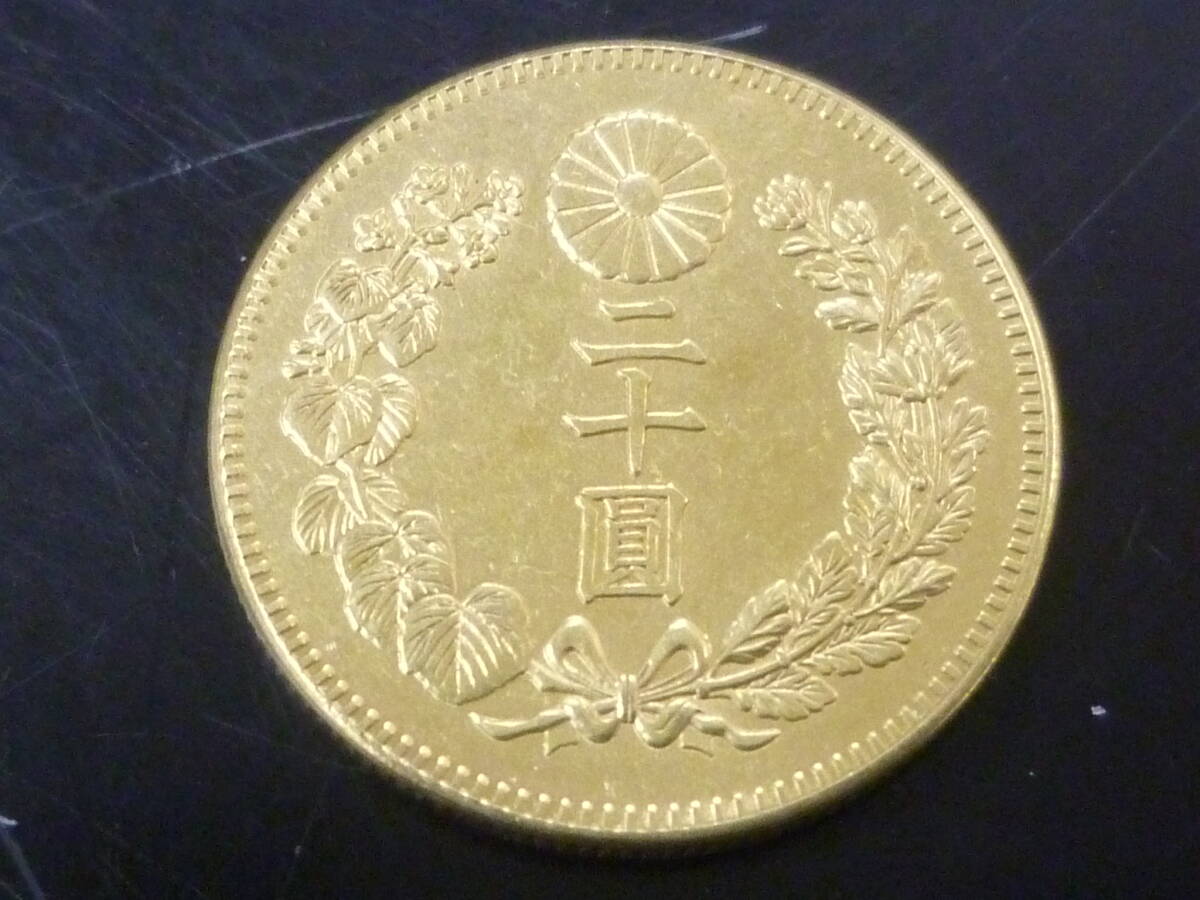 - 25F A №30 <参考品> 金貨 明治三十八年 二十圓 偽物 寸法約 直径2,7cm・重量16g