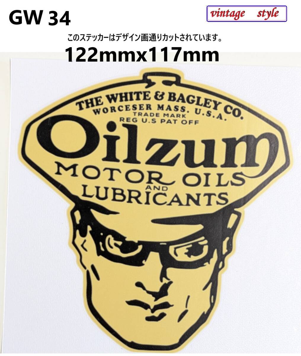 > GW34-6 特価 ヴィンテージスタイル OILZUM 黄 アメリカ USA バイク モーターオイルステッカー ダメージ加工 ガレージ デカール