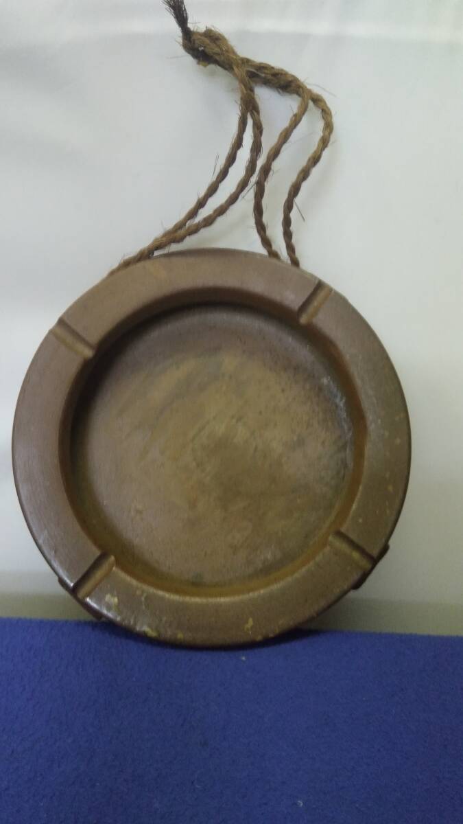 - 「備前焼 麻紐付き飾り皿 円形灰皿 陶印あり作者不明 直径 22cm 高さ5cm 」喫煙具たばこ小物入れ