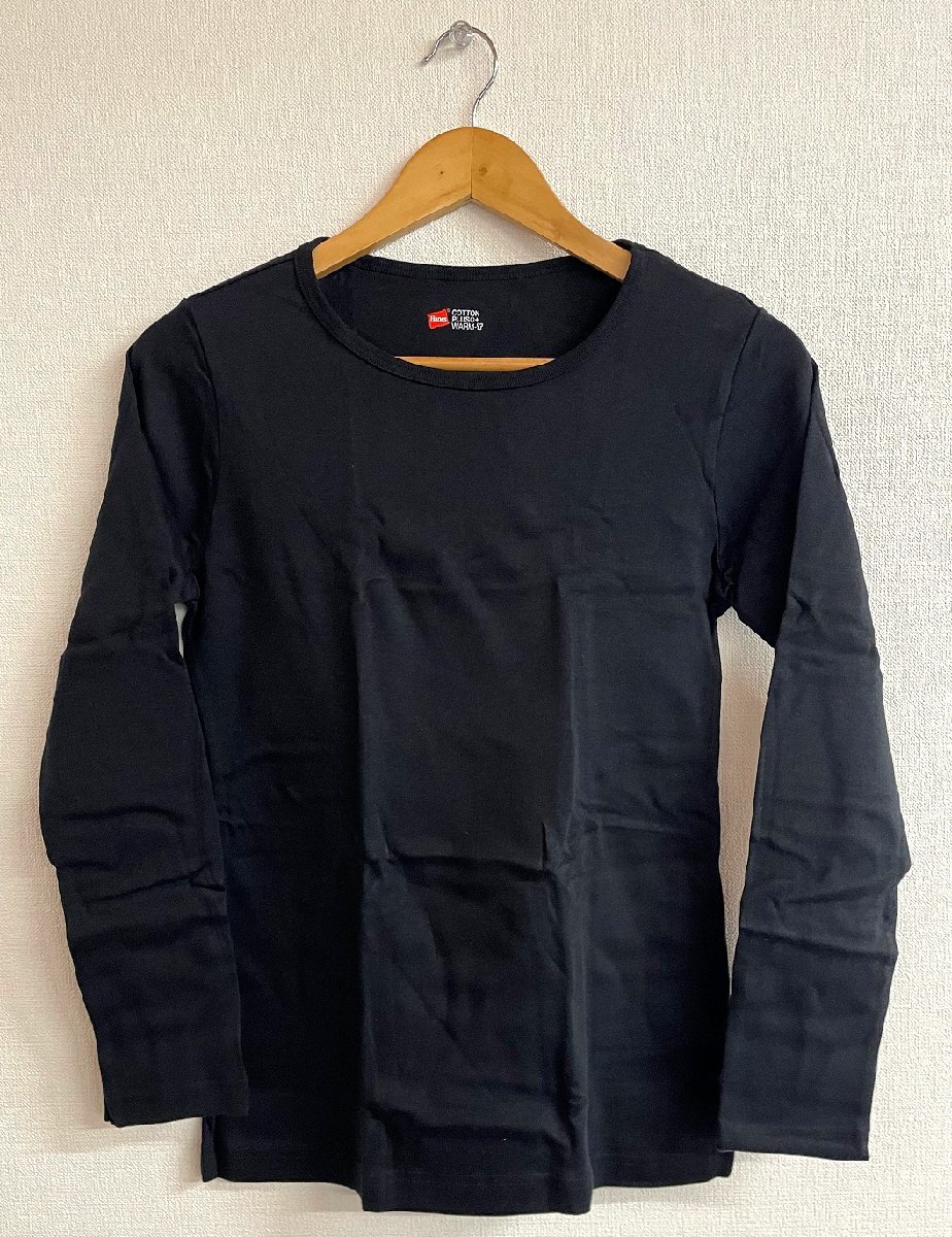 - Hanes コットンプラスウォームTシャツ Lサイズ ブラック クルーネックロングスリーブ インナー 綿100%