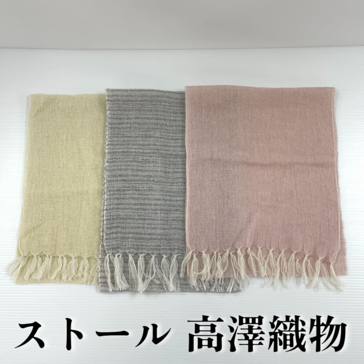 > 【ストール 高澤織物】未使用 カシミヤ?春夏 スカーフ ショール 肩掛け 膝かけ 国産 日本製 防寒 ピンク グレー クリーム #0263-683Z8