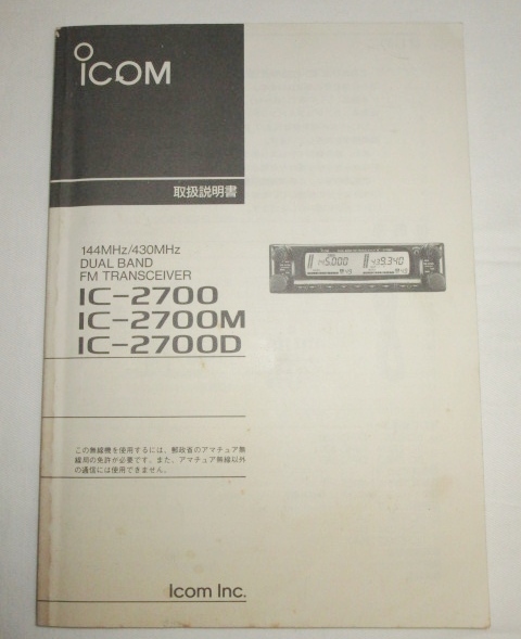 - 《取扱説明書 原本/b》アイコム IC-2700 IC-2700M IC-2700D