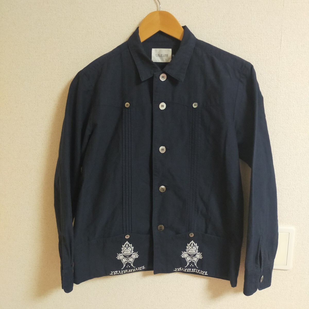 > CAL O LINE キャルオーライン CL161-031 キューバシャツジャケット 刺繍 XS ネイビー(紺)