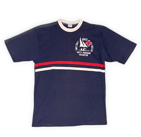 - 70’s 米国製 バータグ チャンピオン Champion ビンテージ Tシャツ 赤十字 インストラクター ファストエイド ネイビー XL [ta-1367]
