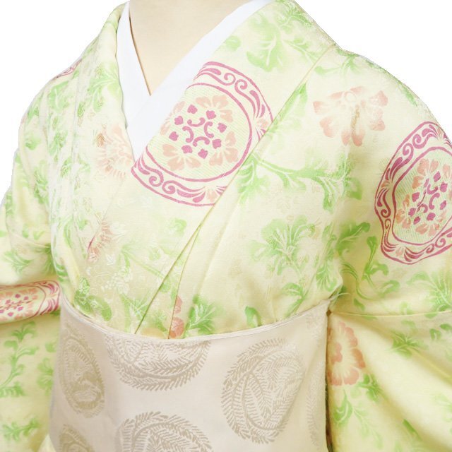 > 特選 小紋 着物 未使用 正絹 袷 カジュアル 作家物 落款 花模様 地模様 反端付き 承和色 多色 身丈161.5cm 裄70cm M きもの北條 A1169-6