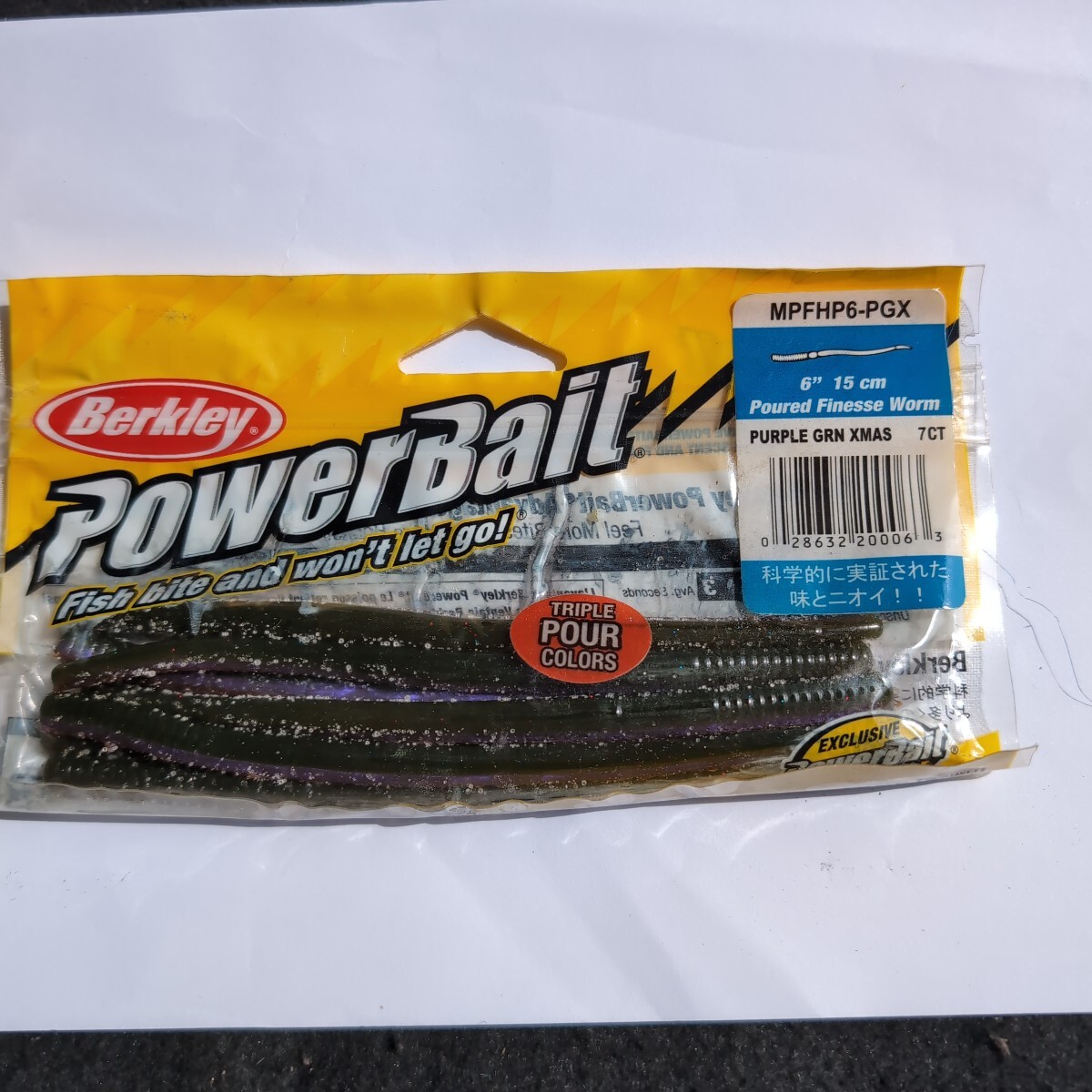 - ■新品■バークレー■POUREDフィネスワーム■6インチ、7本入、パープルグリーンクリスマス