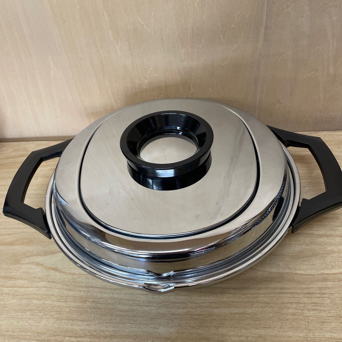 - 天ぷら鍋 蓋付き フタ 油のとばないフード 約26cm 未使用保管品 両手鍋