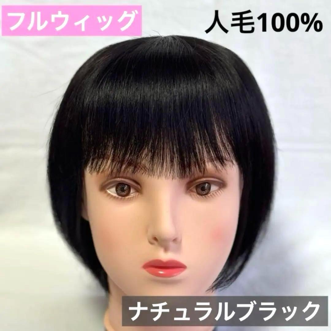 - 【ナチュラルブラック】人毛100% フルウィッグ 医療用 ボブ ストレート 白髪隠し かつら 帽子