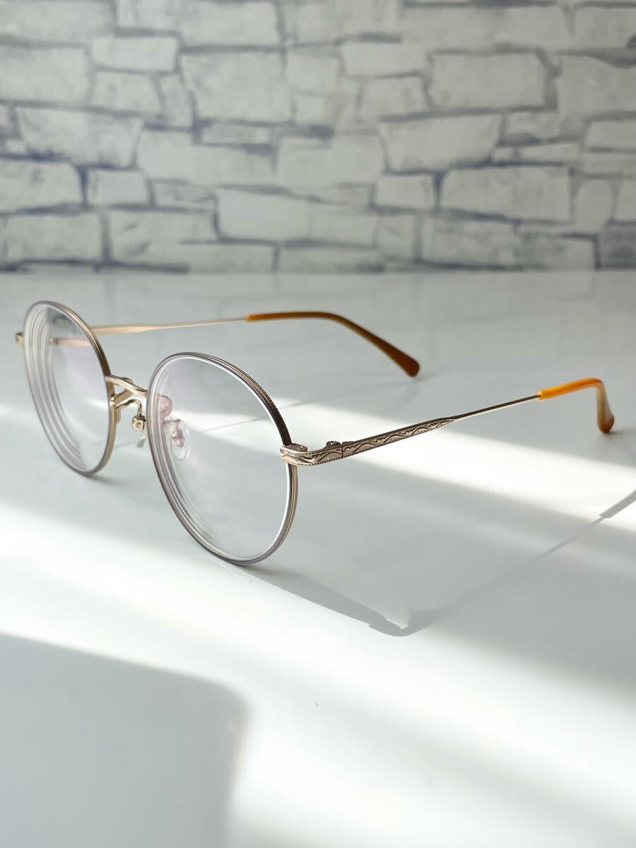 > JINS Modern DECO metal LMF-19A-015 ジンズ ラウンド型 ライトブラウン×パープルブラウン 眼鏡 良品