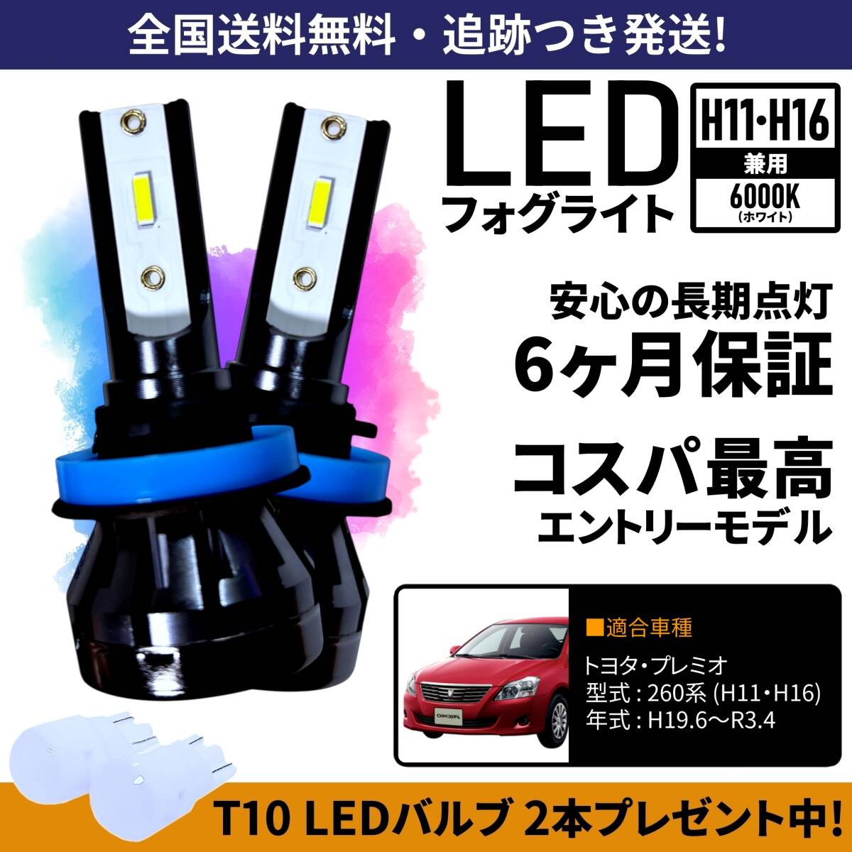 - 【送料無料】トヨタ プレミオ 260系 ZRT260 NZT260 ZRT261 ZRT265 LED フォグライト フォグランプ H11 H16 ホワイト 6000K 保証付き