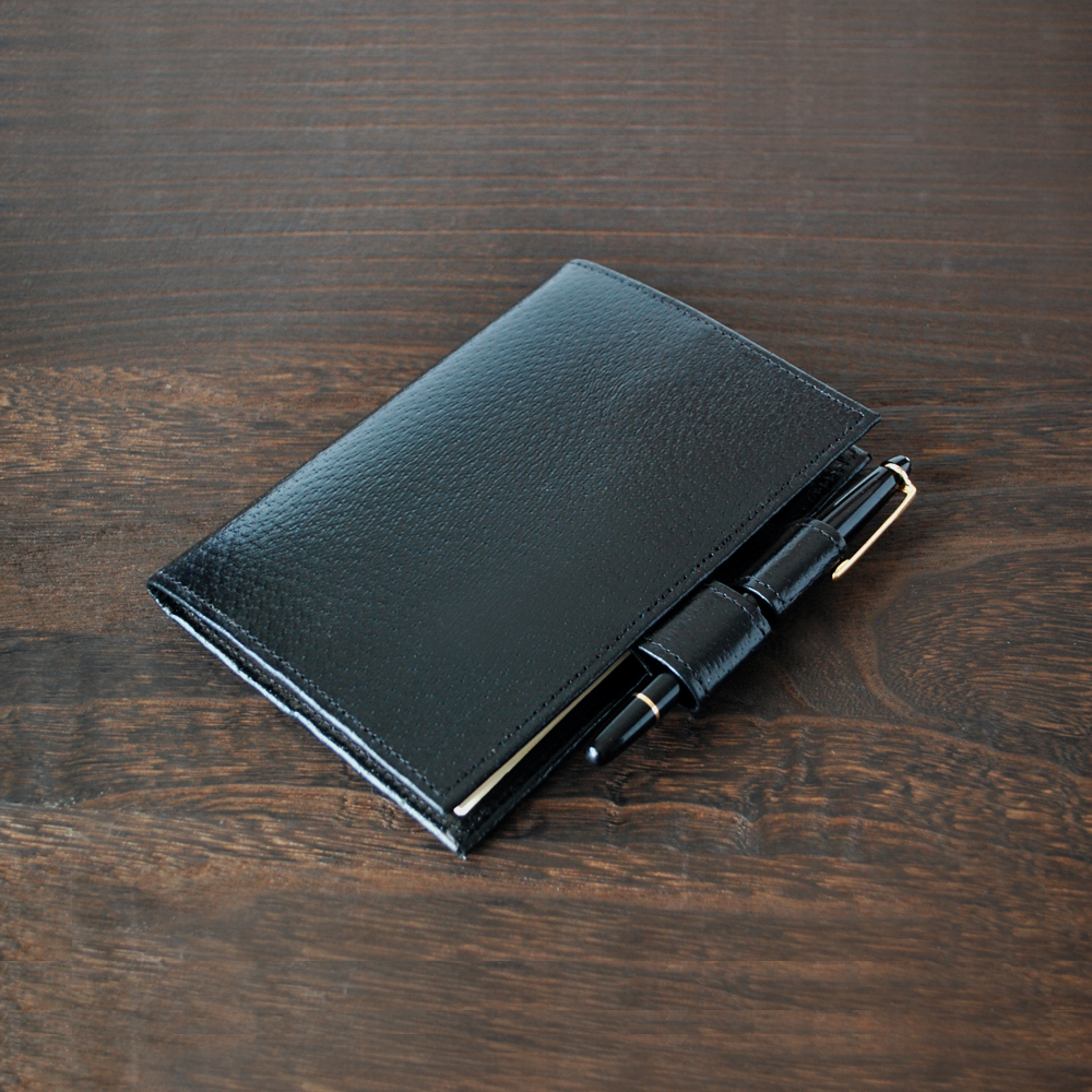 - 送料込み★かばん屋さんのほぼ日手帳に対応★文庫サイズ ブックカバー★豚革ブラック 黒(ペンホルダー付) ※手帳本体は付きません