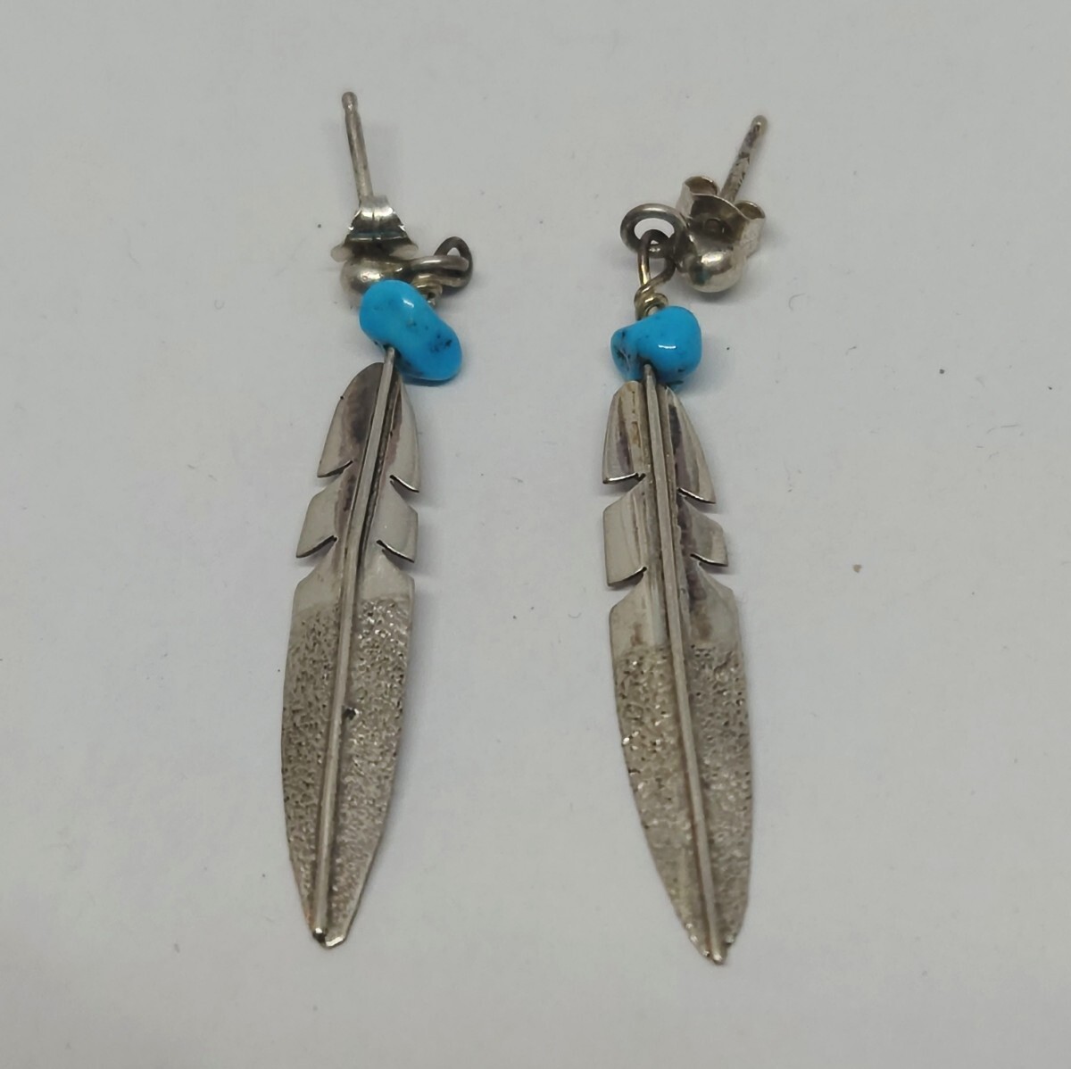 - インディアンジュエリー ピアスキャッチ ナバホ族 NAVAJOターコイズトルコ石ツートンフェザー羽根 シルバー 1P片耳 シルバー92 レディース