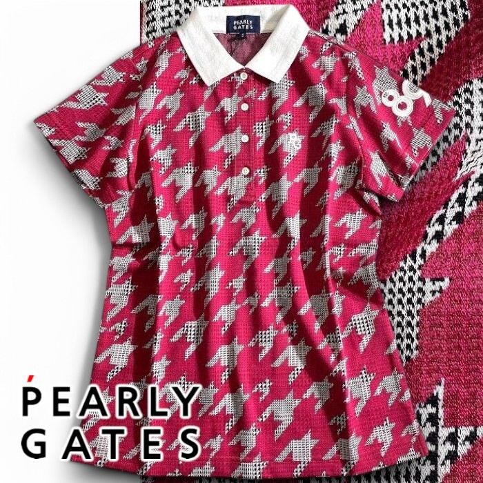 - PEARLY GATES パーリーゲイツ 定価2.2万 日本製 ダブルジャガード 千鳥 半袖 ポロシャツ ゴルフ レディース 2260906 090 1 ▲024▼50404w02