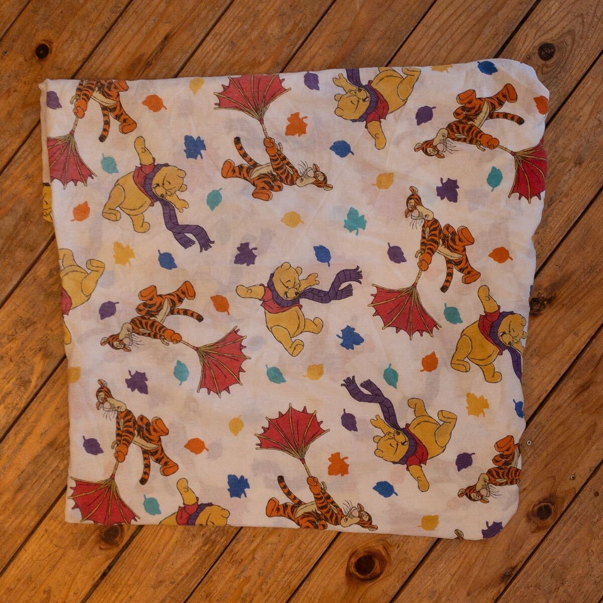 - USAヴィンテージ ベッドシーツ くまのプーさん リメイク生地 素材 ボックスシーツ Disney 総柄 ディズニー アメリカ仕入 B2465