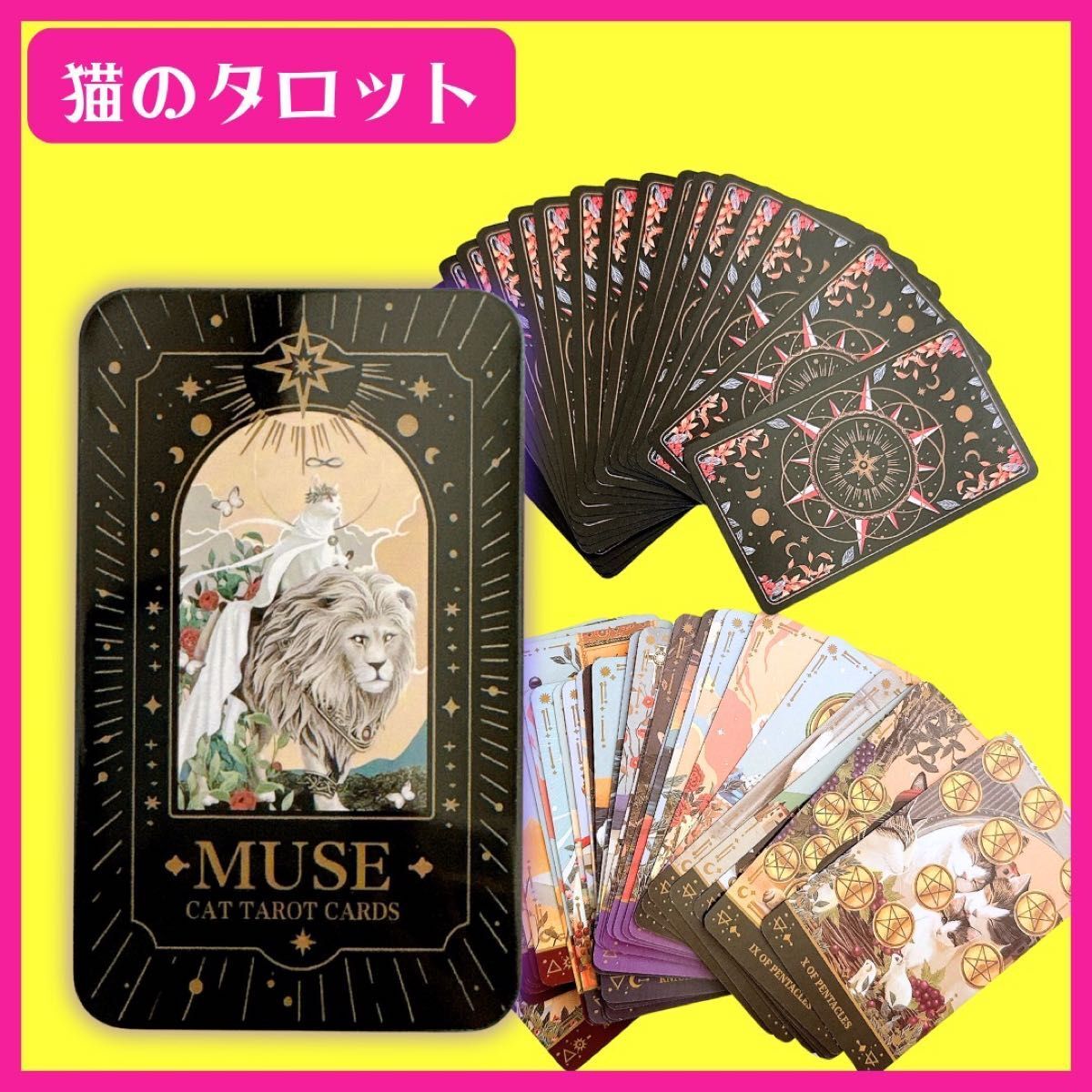 - タロットカード ブラック缶 猫 ねこ 缶ケース 星 黒猫 白猫 占い カード