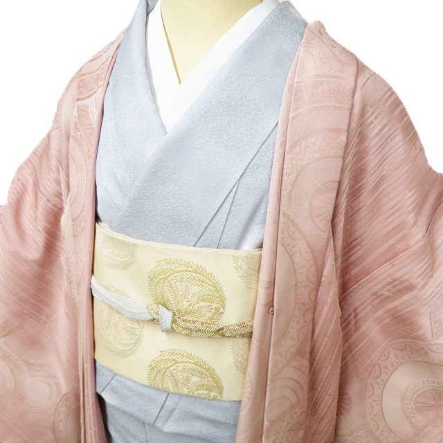 - 羽織 コート 着物 正絹 中古 地模様 暈し 赤香色 身丈105cm 裄73cm きもの北條 A1171-1