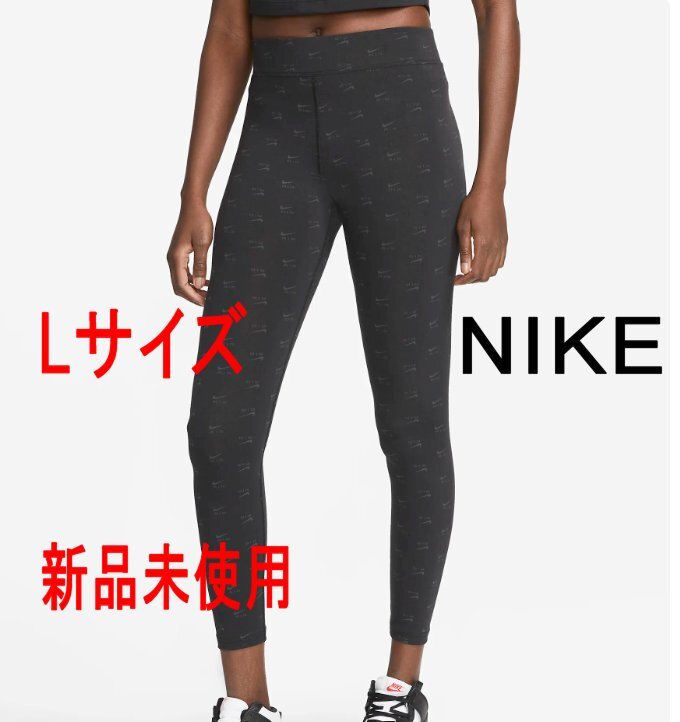 - 新品未使用◆送料無料◆(レディースL)ナイキ NIKE AIR 黒ロゴ総柄タイツ フルレギンス スパッツ /タイトフィット/ハイライズ