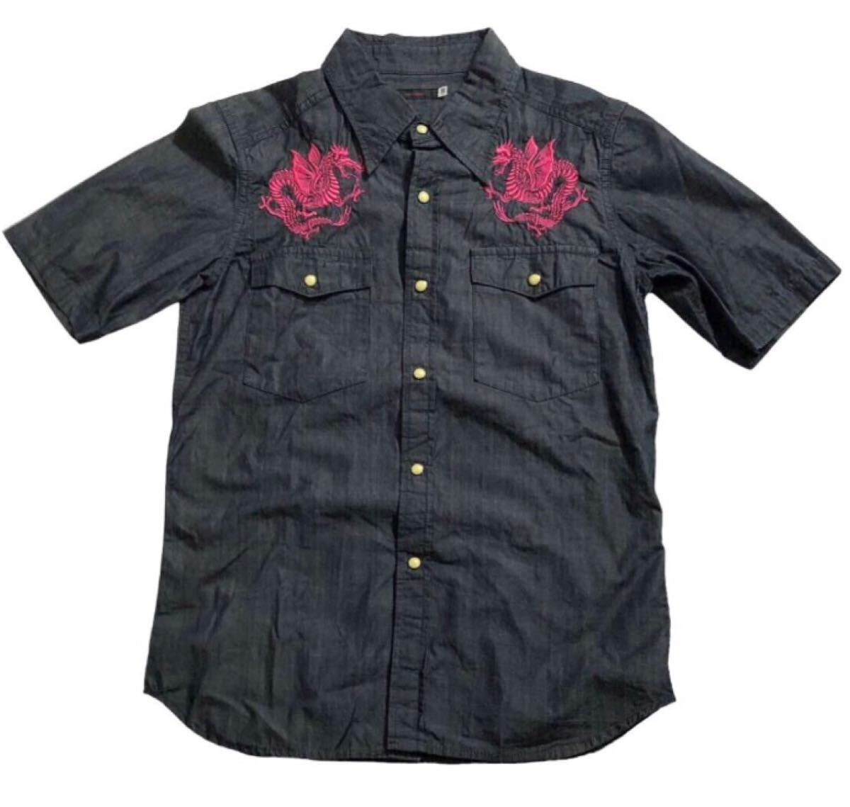 - 送料無料 ● FULLCOUNT フルカウント ● ダブルドラゴン 刺繍 半袖 コットン シャツ インディゴブルー 36