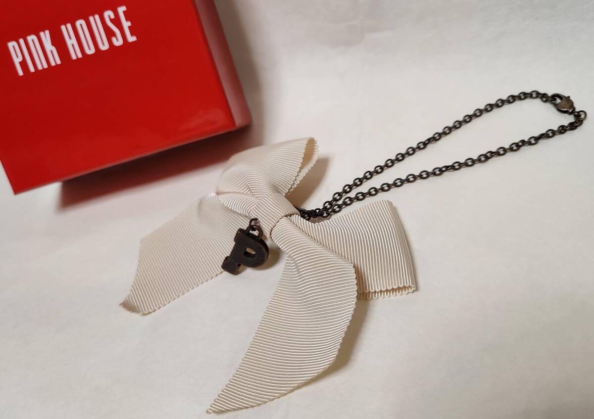> S A L E !! 送料込み ! チャーム * ピンクハウス/P I N K H O U S E *『 リボンモチーフ 2WAY キ ー ホ ル ダ ー 〜 キナリ 〜 』未使用