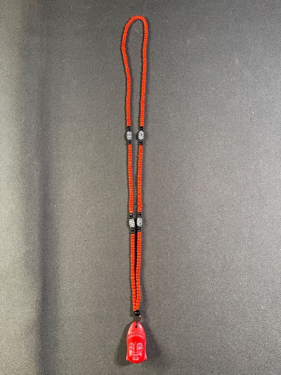 - 珊瑚 サンゴとビーズネックレス 観音様彫刻あり チベットネックレス