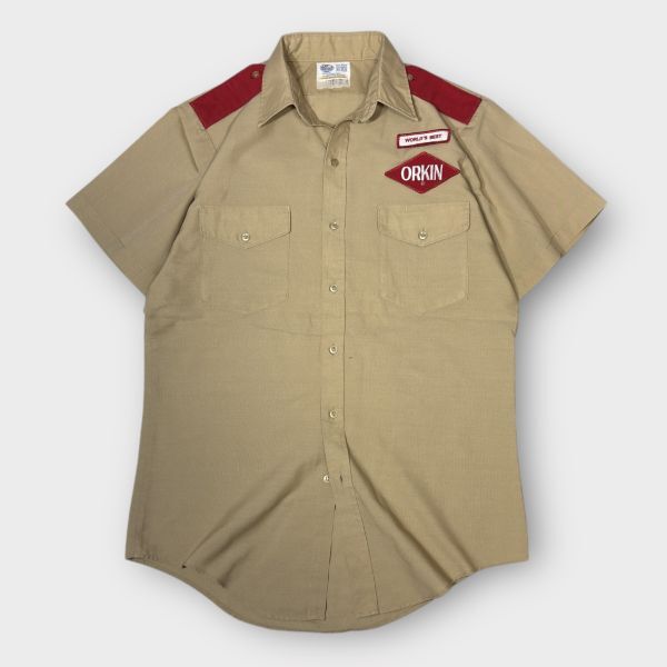 - ★USA製★ORKINワッペン★RIVERSIDE 半袖ワークシャツ sizeM相当 ベージュ系 エポーレット 古着 クリーニング プレス済み 2049