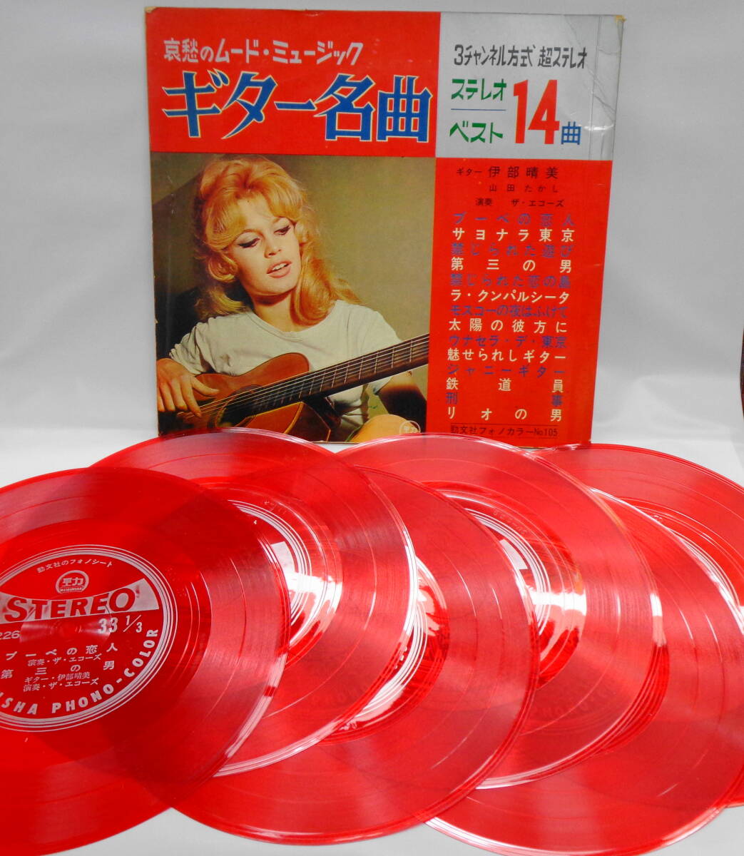 - e#6274◆ソノシートブック◆ 伊部晴美 哀愁のムードミュージック ギター名曲 ベスト14曲 ソノシート6枚 14曲入 和モノ 勁文社 フォノカラー