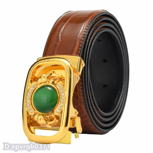 > レザーベルト 新品 オートロック式 宝石飾り ワニ柄 ゴルフベルト 金属バ ックル メンズベルト 幅3.5センチ 紳士 長さ調整可能 /ブラウン