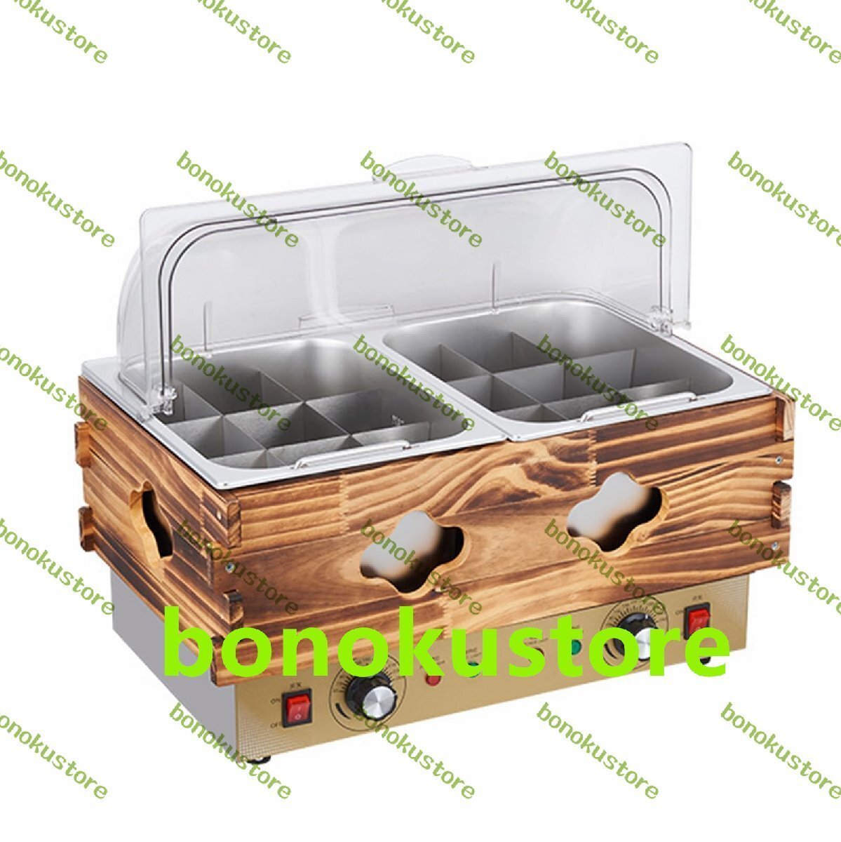 > おでん調理鍋 ステンレス おでん鍋 業務用卓上おでん調理機 電気おでん鍋 大容量 温度調節可能50-250℃ 自動保温 (2筒9室ふた付き)