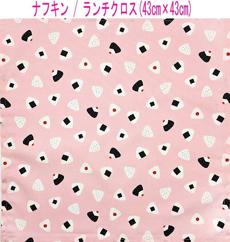 - ナフキン・ランチクロス(43cm×43cm)正方形【おにぎり柄 ピンク】ランチマット ランチョンマット 日本製 オニギリ おむすび オムスビ ご飯