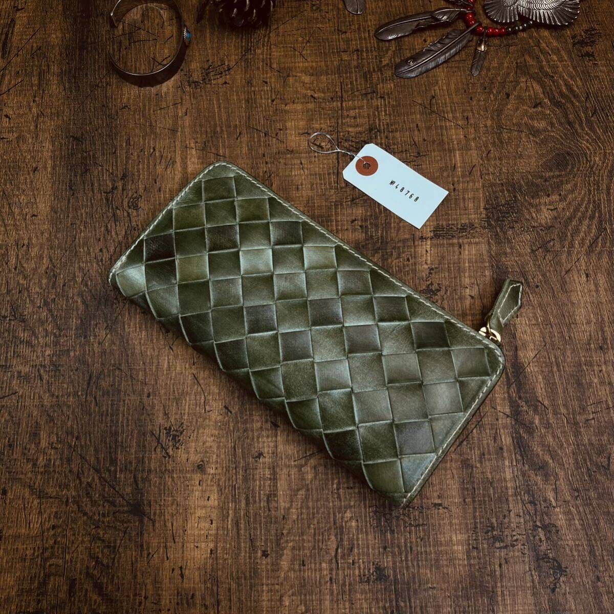 - 極太編み込み L字型ラウンドジップ ブライドルレザー イントレチャート メンズ 財布 長財布 本革 ハンドメイド 革財布 送料無料