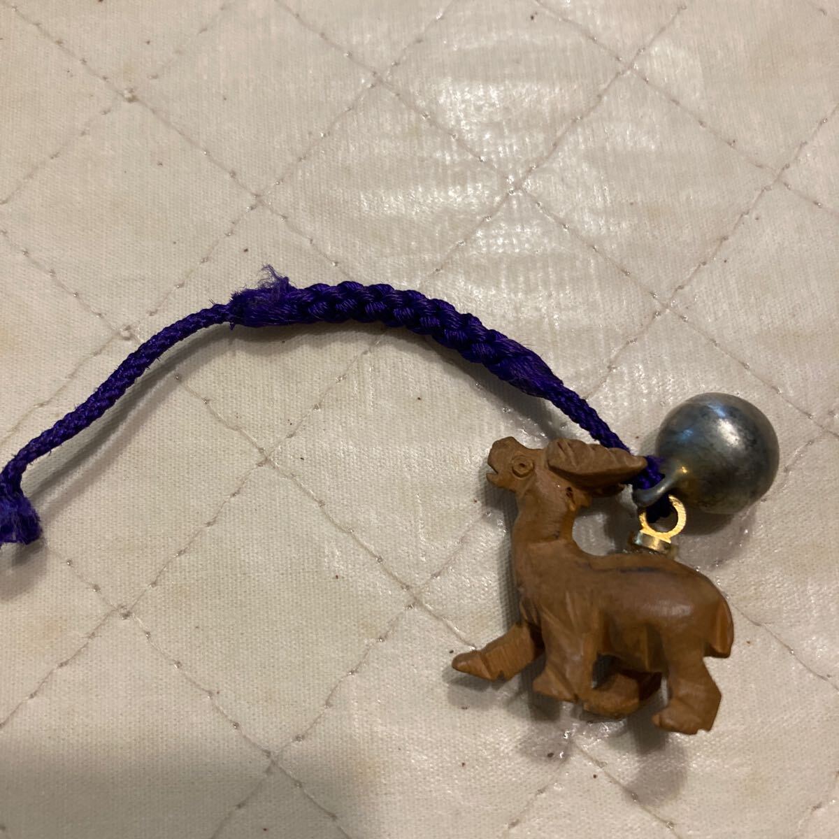 - 木製 根付 木彫 ラクダ ロバ? 縁起物 キーホルダー ストラップ 昭和レトロ 鈴付き