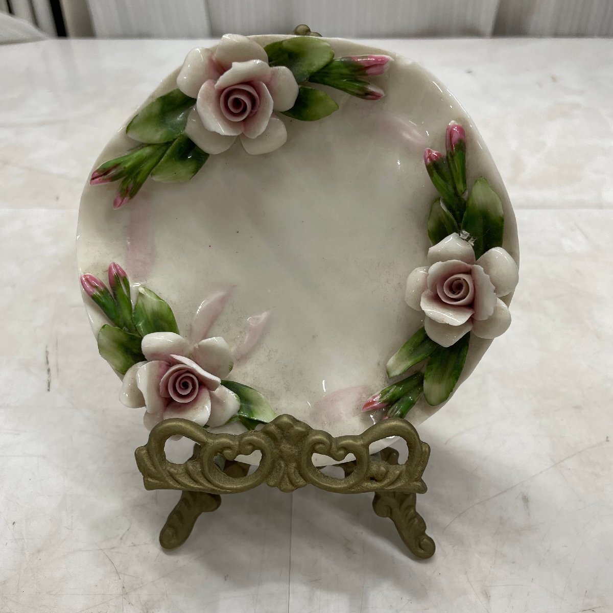 > ♭M♭ お花 置物 中古品 アンティーク お皿 壁掛け インテリア 飾り皿 陶器 ♭J-250408
