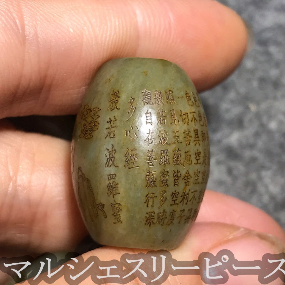 - 玉 和田玉 観音 若波羅蜜心経 玉桶珠 古珠 珠 盤珠 腰珠 散珠 diy仏珠 菩提アクセサリー 裝身具 護符開運