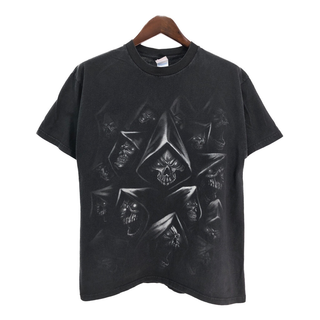 - 大判プリント スカル 半袖Tシャツ ブラック(メンズ L)中古 古着 T7437