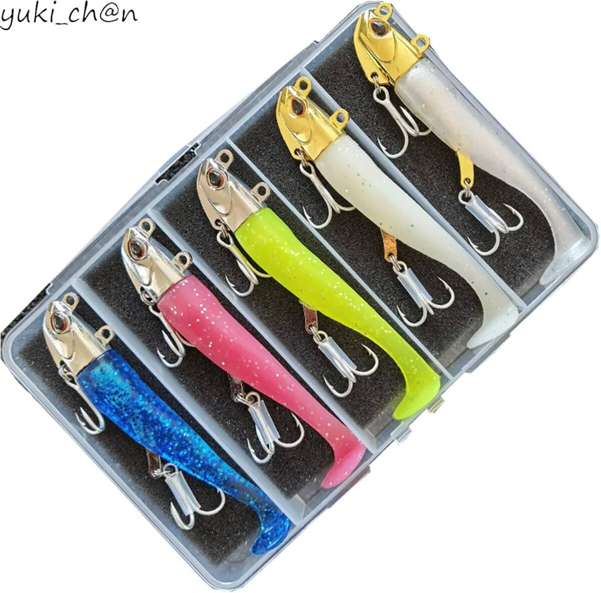 - ルアーセット ワームセット ジグヘッドワーム 30g 11cm シャッドテール 釣具 ケース付き 5個セット マルチカラー