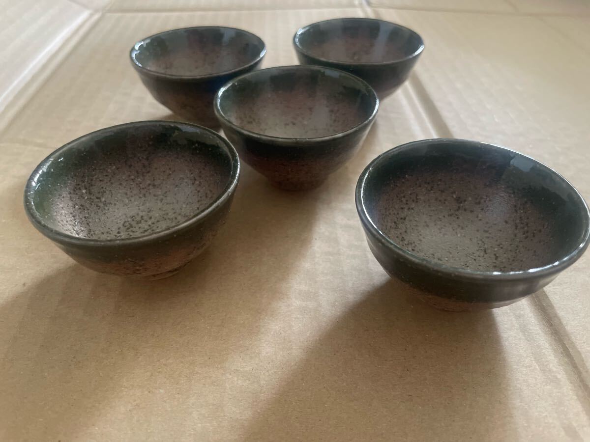 - 陶器 茶器 湯呑美濃焼 菱峰 老竹結晶釉 ぐい呑み 5客セット 未使用品 酒器 猪口 お猪口 酒器
