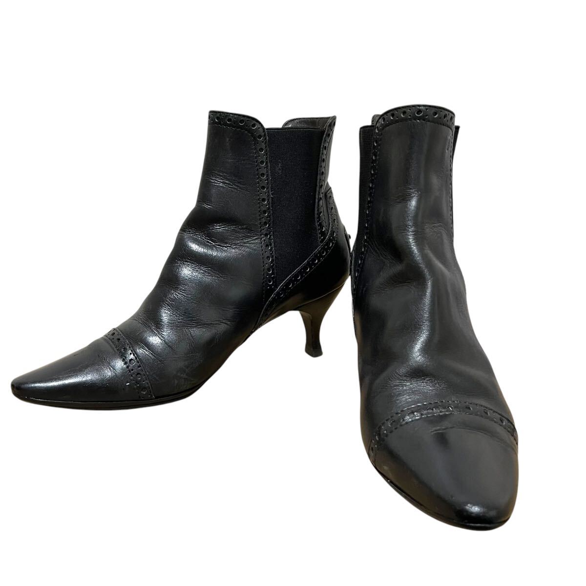 > ※BT3 TOD'S トッズ ヒールショートブーツ サイドゴア ヒール ブラック キャップトゥ 表記35 22.5cm相当