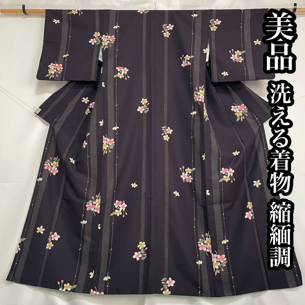 > #F625 美品 洗える着物 ポリエステル ちりめん調 桜 和装 和服 着物【wellriver】