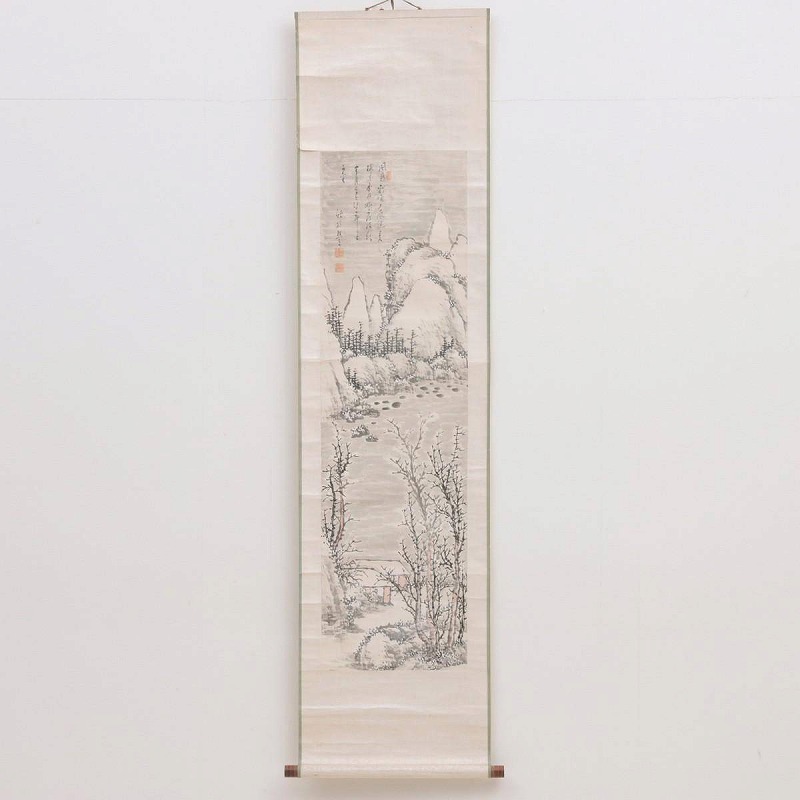 - 【真作】田近竹邨 掛軸 紙本 肉筆 彩色「雪累山水」落款 印有 合箱 田能村直入師事 de11-9868[TOM]